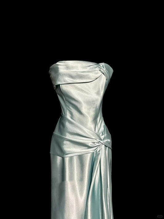 Mint Green Elegant Long Satin Ball Gown Evening Dress Party Dress nv4197
