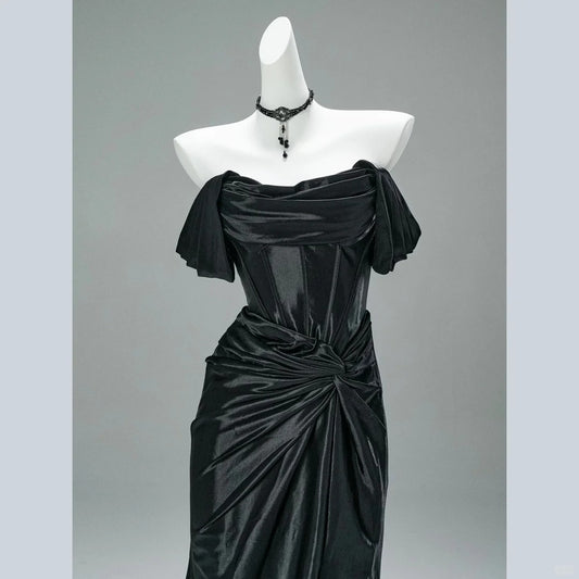 Black Elegant Satin Long Prom Dress Evening Dress Graduation Dress nv4225