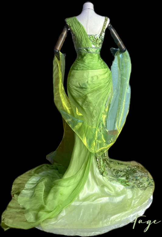 Green Luxury Gorgeous Shiny Vintage Fashion Floral Exquisite Beaded Sequins Long Mermaid Slim Fit Chiffon Ball Gown Evening Gown nv4062