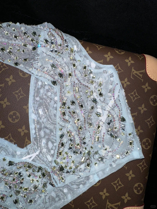 Blue rainbow beaded long chiffon mermaid ball gown evening dress party dress nv4318