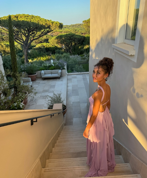 Pink Chiffon Sweet Dreamy Starfish Decorated Maxi Dress Long Evening Dress Party Dress nv2690
