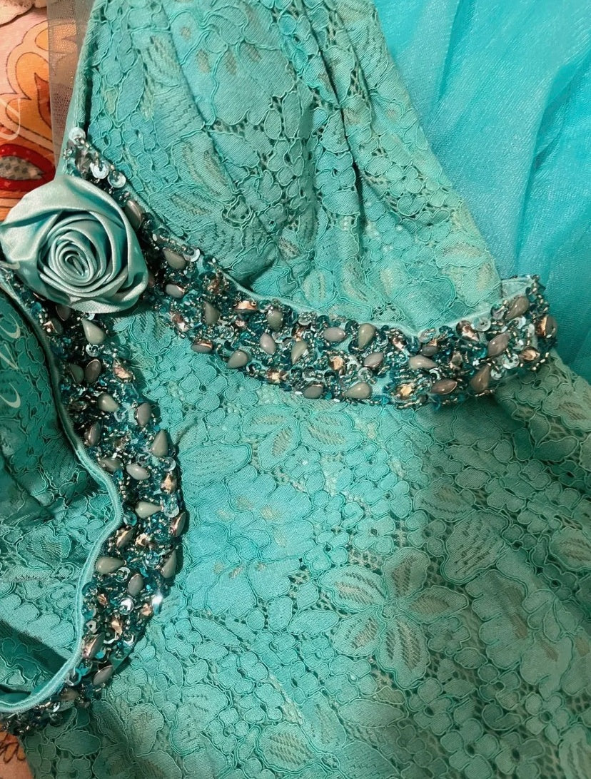 Blue Beaded Beautiful Mermaid Long Lace Tulle Ball Gown Evening Gown Party Dress nv4324